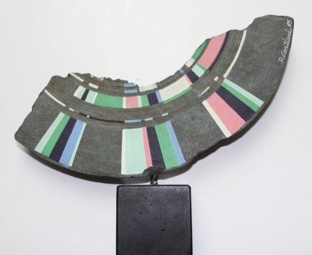 Ciapùn meteorite blocco di pietra ollare, sezionato, scolpito al tornio e dipinto (1980)
